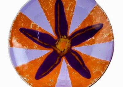 Transparent purple starfish immersed in transparent orange and lavender. Sixteen inch bowl….$150