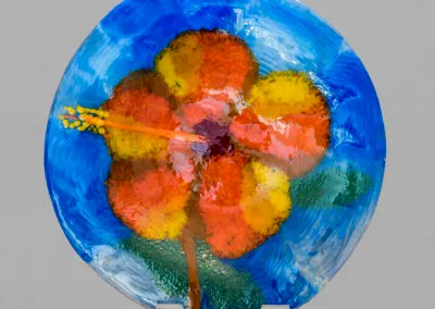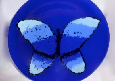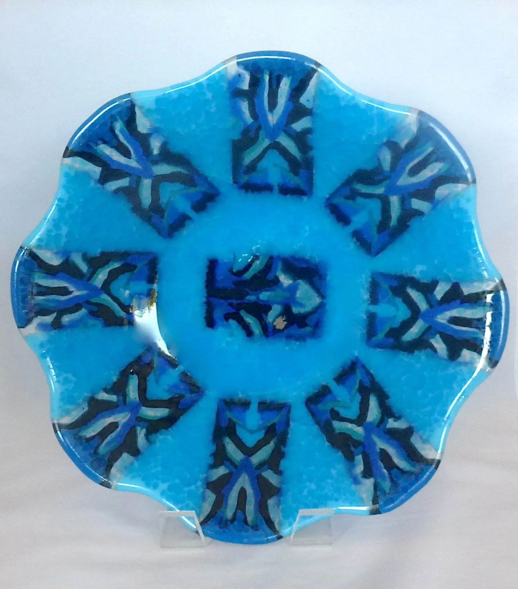 This 16″ blue pattern bar piece was resurrected by Sandy after Bob dropped her original piece on a concrete floor….$200