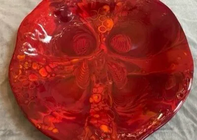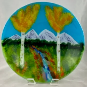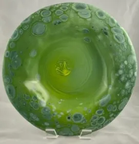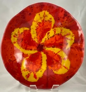 Designed by Sandra. Seventeen inch diameter, slumped on hand built donut mold. …$225